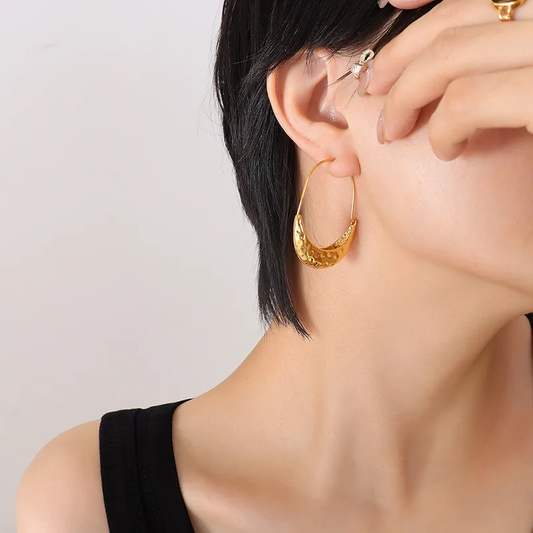 18 K Hammered Golden Crescent Earrings