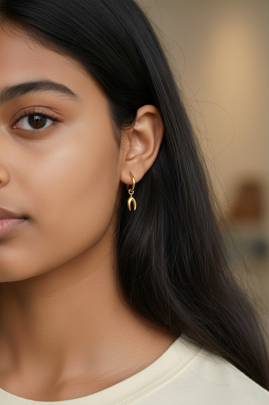 18K Gold Plated Mini Half-Moon Drop Earrings