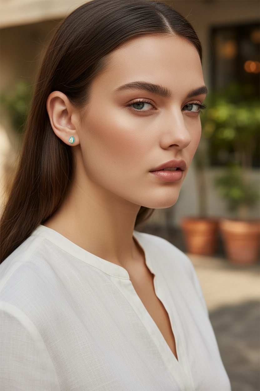 Designed to be lightweight and comfortable, these earrings are perfect for all-day wear—whether you’re dressing up a casual outfit or adding a graceful touch to evening looks. The calming turquoise tone symbolises serenity and confidence, while the white stone adds a hint of timeless brilliance, making these studs a versatile must-have.