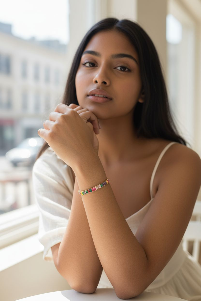 Introducing the Aurora Tennis Bracelet - a trendy multicolored addition to your jewelry collection. Boldly express yourself with this playful piece that adds a touch of fun to any outfit.
