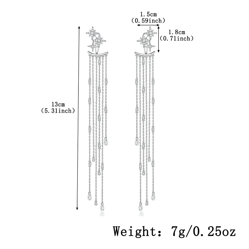 • Design: Triple star stud top with long dangling strips and water droplet charms