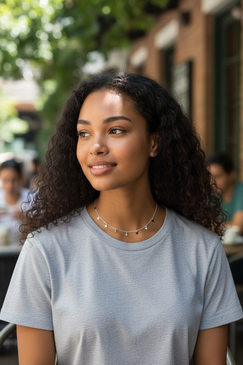 Designed for modern women who love subtle statement jewellery, this star silver chain pairs beautifully with casual outfits, office wear, and festive looks alike. Lightweight, skin-friendly, and timeless, it’s a must-have piece for anyone who loves celestial-inspired jewellery.